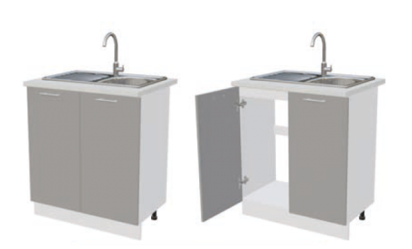 Барная стойка БС-6 ШНМ800 Шкаф нижний под мойку Графит софт/Белый глянец холодный