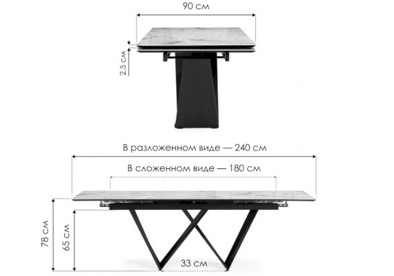 | Длина разложенного столика, мм | 2400 |