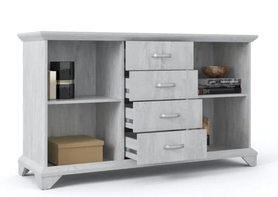 Наполнение: 4 выдвижных ящика + 2 шкафчика с распашными дверцами (внутри по 1 полке)