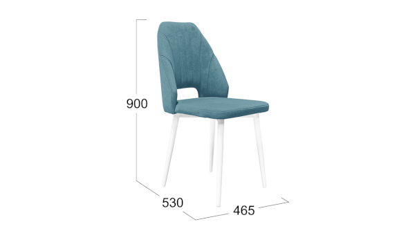 Опора изделия выполнена из металла, окрашена в матовые глубокие цвета «Черный муар» и «Белый муар», которые сейчас очень популярны. На ножках предусмотрены пластиковые заглушки, которые придают стулу дополнительную устойчивость и защищают пол от царапин. Основой мягкого элемента служит фанера и ППУ. Для обивки стула используется велюр DREAM.