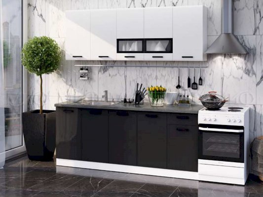 Модульная кухня Рио Белый глянец холодный/Черный глянец (Миф)