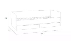 Односпальная кровать подходит для детской мальчиков и девочек в современном, скандинавском и стиле лофт. В кровати предусмотрены ящики для хранения постельного белья или игрушек. Натуральный материал ламелей не вызывает аллергии и безопасен для здоровья. Изогнутая форма ламелей придает основанию спального места большую прочность и дополняет ортопедические свойства матраса.