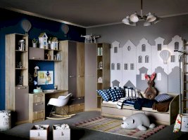 Полка органично дополнит рабочее место в детской. Закрытая секция модуля подойдет для хранения книг. Газлифты максимально высоко поднимают фасад вверх, обеспечивая большую площадь обзора содержимого. Предметы декора будут хорошо смотреться в открытых секциях полки.