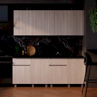 Вы легко сможете зонировать все пространства для хранения: в ящиках достаточно места для столовых приборов, а на полках в нижних шкафах - для тарелок, салатниц и других предметов, которые требуются ежедневно. На закрытых верхних полках удобно разместится как крупная, так и небольшая посуда.