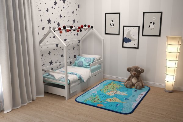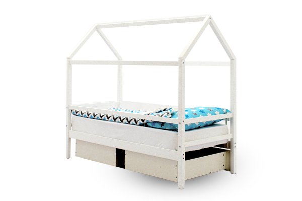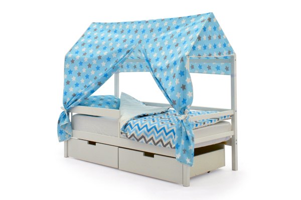 Кровать-домик легко превращается в целый замок для игр с помощью разноцветных тематических игровых накидок. Текстильная крыша на домике создаст ребенку уют и защищенное пространство.