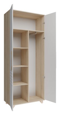 Шкаф Копенгаген подходит для хранения вещей как на вешалках, так и в сложенном виде. Для этого он оснащен выдвижной штангой и комплектом щитовых полок.