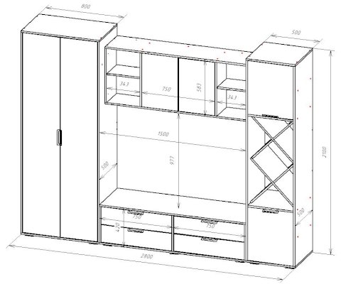 Ниша под ТВ (ШхВ): 1500х977 мм