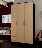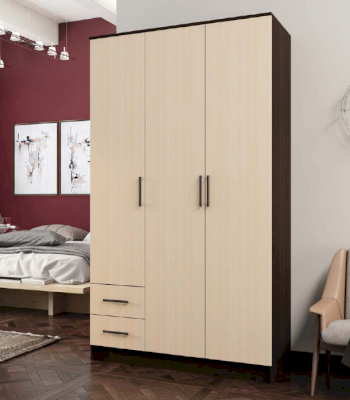 Практичный и функциональный шкаф распашной №5 изготовлен из ламинированной ДСП. Это трехстворчатая модель дополненная двумя выдвижными ящиками. Простой и лаконичный дизайн подходит к любым современным интерьерам. Расцветка и текстура отделки стилизованы под древесину дуба оттенков венге и молочный. Скромная фурнитура отлично сочетается с гладкими, не отягощенными декорированием фасадами.